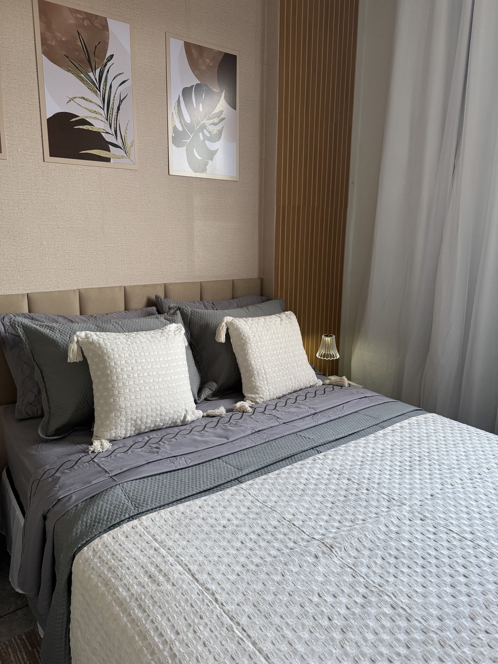 As capas de almofada de 45cm x 45cm complementam o kit, adicionando charme e estilo ao seu sofá ou poltrona. O acabamento em Pom Pom traz um detalhe especial, elevando ainda mais a estética do seu espaço.